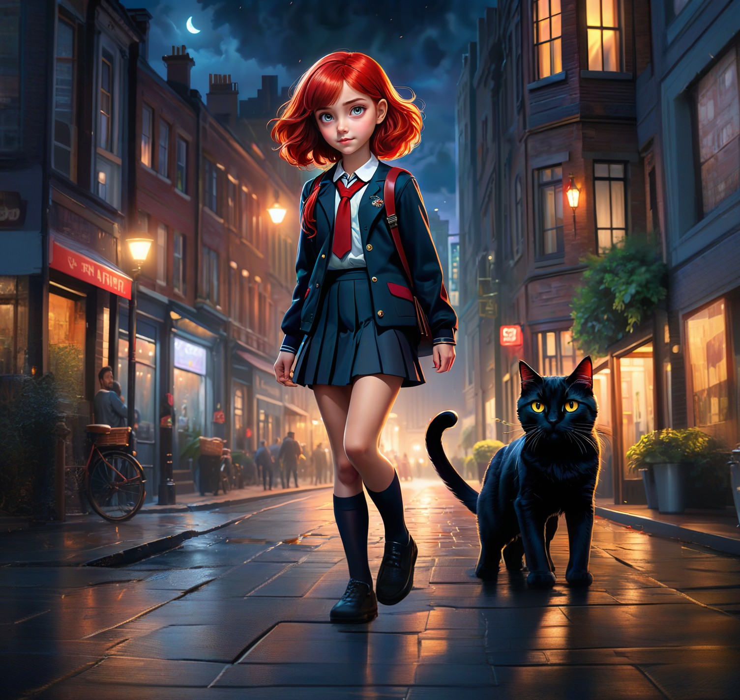 Девочка всплеснула руками, поправила сумочку на плече и, легко перепрыгнув очередную огромную лужу на дороге, побежала за своим котом…