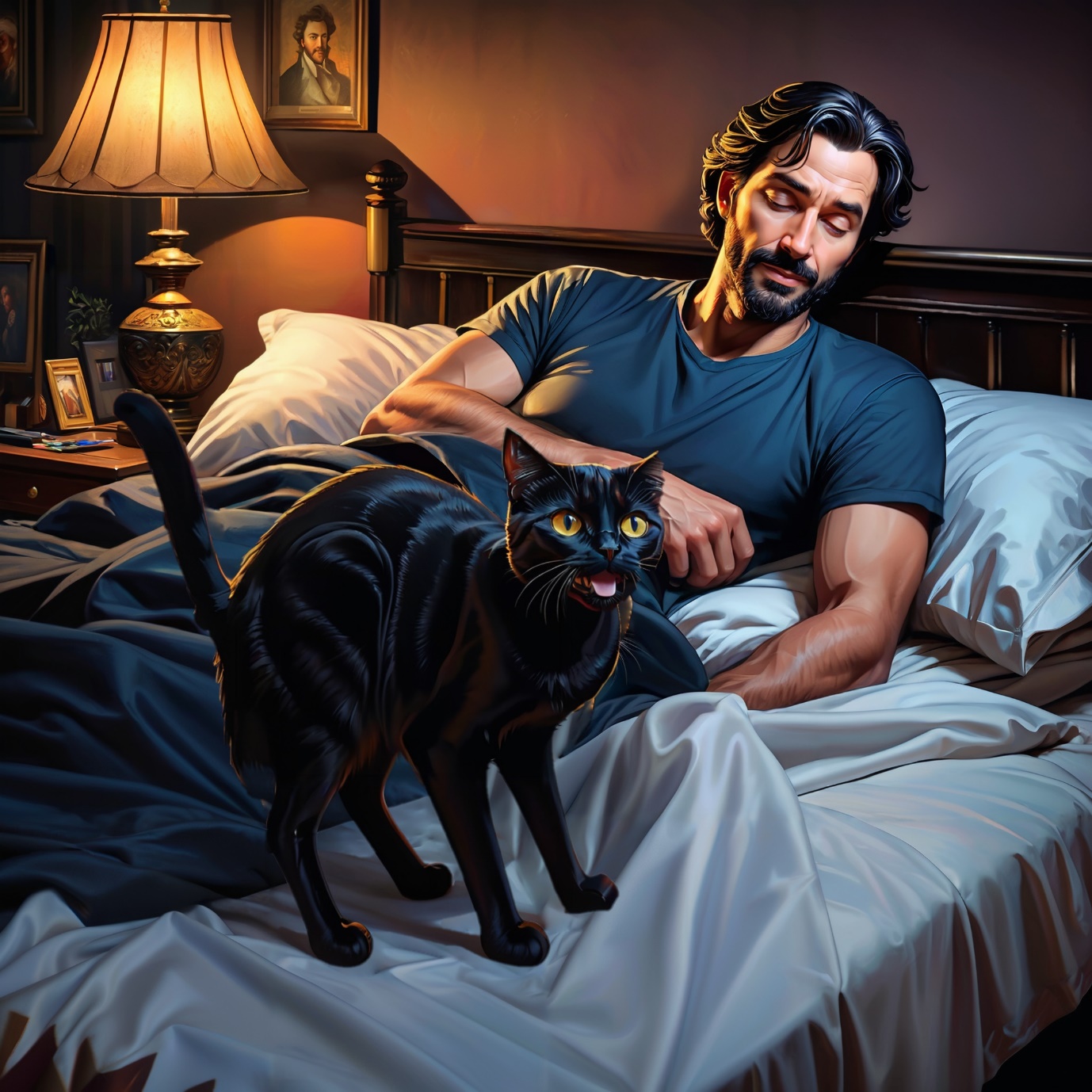 Мужчина подскочил с перепуга, уселся на кровати и уставился прямо перед собой, где буквально в двух метрах от него светились изумрудные кошачьи глаза, и блестели в темноте стальные и острые когти.