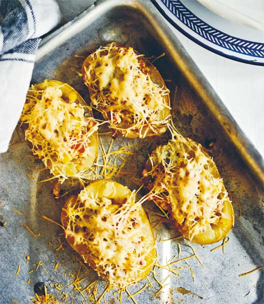 Приготовьтесь к волшебству. Сейчас мы сварим картофель за 5 минут ☺ Проткните каждую картофелину несколько раз с разных сторон вилкой. Поместите в микроволновку и готовьте каждую в течение 5 минут. После этого дайте картофелю остыть, чтобы его можно было взять в руки. Разрежьте по горизонтали. Удалите из картофеля мякоть, оставив стенки 5–6 мм толщиной.
