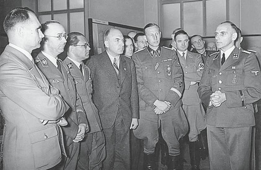 Р. Гесс, Г. Гиммлер, Ф. Боулер, Ф. Тодт и Р. Гейдрих (слева направо) на выставке «Планирование и построение нового порядка на Востоке»