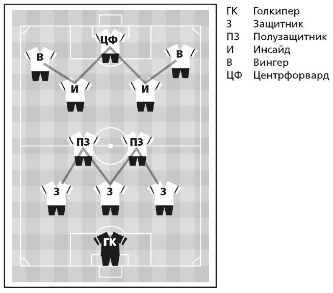 Тактическая схема с тремя защитниками («W-M», или «дубль-вэ»)