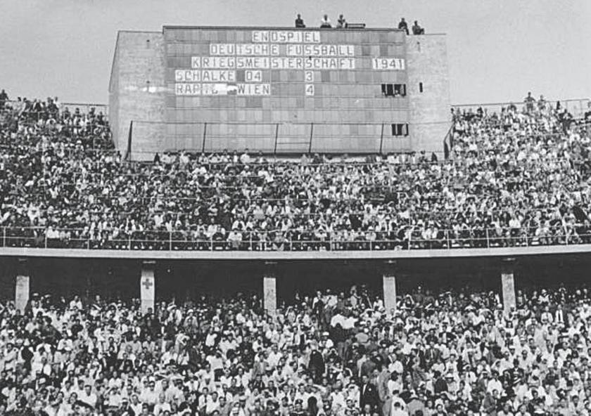 Надо сказать, что образы блицкрига в спорт привносили не только партийные функционеры. Победоносные кампании 1939–1940 годов были так раскручены пропагандой, что их пафос проник не только в фильмы и радиопередачи, но и в футбольные репортажи. Например, сенсационную победу венского «Рапида» над «Шальке 04» (Гельзенкирхен) в финале Бундеслиги со счетом 4:3 один комментатор назвал «кровавой бойней на поле». Ему вторил другой: «Это был блицкриг в истинном смысле слова, голы ударяли как молнии». Действительно, нападающие «Шальке 04» забили два гола в самом начале матча, а остальные пять мячей, из которых немецкой команде принадлежал уже лишь один, влетели в сетку ворот за первые 14 минут второго тайма. Атакующий стиль двух клубов стал для прессы подтверждением правильности реформы Оберхубера. Однако милитаристские образы взяли на вооружение и ее противники: в футболе, как и на войне, для победы требуется не только мощное нападение, но и эффективная защита – «зенитные батареи» и «линия Зигфрида», – утверждали они.