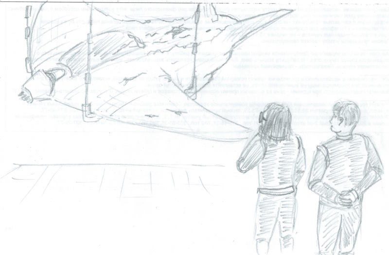Гримен оживил проекцию на том месте, где совсем недавно покоился космолет. На ней изобразилась детальная 3-мерная схема «Гарпуна» вплоть до последнего винтика и сварного шва в масштабе один к одному.