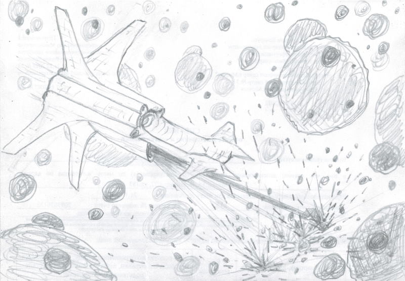 Ив окинула взглядом этот «зигзаг», тяжело вздохнула и, ничего не ответив, просто одобрительно кивнула головой. Рубинового цвета яркий сильно пульсирующий луч чистой энергии в секунду превратил среднего размера планетоид в огромное облако пара и ярких искр. Смотреть со стороны «на работу» пента-ватного лазера по имени «Рубиновый пульсар» было одинаково и зрелищно, и опасно для зрения. Прорубая таким образом себе путь, чтобы безопасно встроится в гравитационную струю, малый звездный крейсер «Экскалибур» класса «Утренняя звезда» продолжал движения на «встречу» предполагаемому источнику сигнала. По верхней части судна пробежала вибрация, так что Ив немного присела на корточки.