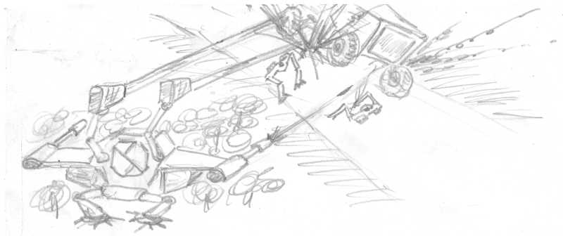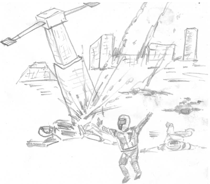 Самокопания Поллукса были прерваны внезапно выскочившими на линию атаки 2-мя тяжелыми 4-колесными квадроботами «Викуб». Пол удержал своих от немедленной атаки, понимая, что это арьергард, чтобы закрепиться на выгодном рубеже и не дать отступающим частям миротворцев улизнуть в овраги. «Хитрые гады! Ну, ничего! Сейчас я вам задам!». Из вражеских машин выскочили «Пульсоны». Поллукс уже изготовился ударить, как в небе на малой высоте он заметил флайбот. «Вот, дрянь! Только тебя мне не хватало!». Ждать еще более было опасно, а раскрыть свои позиции сейчас, значило вынудить врага ударить издали. Пылевые клубы вдалеке на тракте лишь подтвердили его догадки.