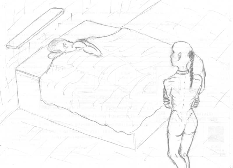 На него в упор смотрело лицо совершенно лысой девушки лет 20 – 22, лишь только ниспадающая сбоку коса портила общую картину. Все обнаженное тело ее было так же абсолютно голое во всех частях. Не было даже намека на хоть какой-то пусть самый маленький волосик, хоть где, кроме косы, и не считая ресниц и бровей. «Дитя ночи» – пронеслось в уме Кирилла.