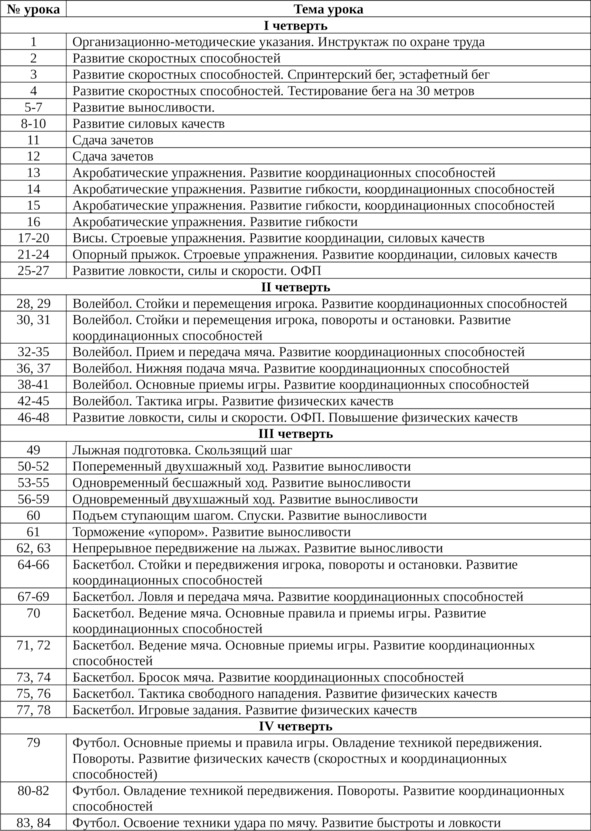Кроме самих поурочных планов-конспектов, пособие содержит три приложения. Первое посвящено проведению тестирования и результатам, на которые можно ориентироваться, второе – вариантам разминок, третье – подвижным и спортивным играм, правилам их проведения и организации.