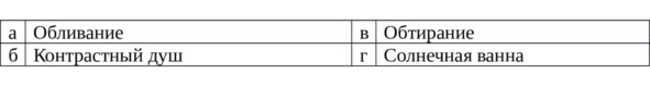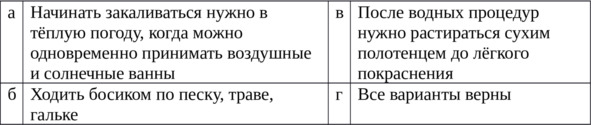 63. Какие варианты водных закаливающих процедур перечислены правильно?