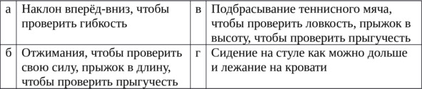 87. Какие контрольные упражнения можно проводить для того, чтобы оценивать развитие своих физических качеств?