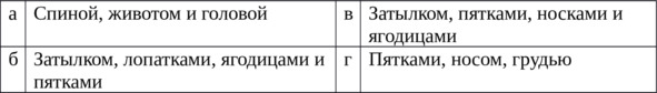 44. Если мы встанем спиной к стене в привычной позе, то какими частями тела мы должны касаться стены, если у нас правильная осанка?
