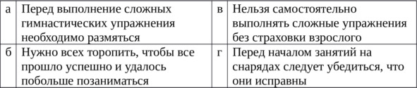 125. Какие правила поведения на занятиях по гимнастике написаны верно?