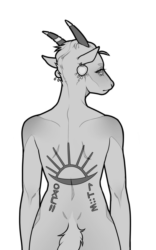 В общем, сняла она и военного вида лётную чёрную куртку, и кофту, и обтягивающие пилотажные штаны, и плотные чулки под ними, оставшись абсолютно нагой. Вот тогда-то я и приметил необычную черту её внешности, которую до того никогда не видел: на её спине, чуть выше ягодиц, по линии изгиба талии было вибито две надписи на древнем языке. Одна переводилась как «Обречена на падение», а вторая «Дочерью неба». Надписи шли от верхней части бедра до начала рёберной клетки, выступая как бы «ножками» для «чаши» полумесяца луны, в которой будто бы лежало солнце с чётко отрисованными семью лучами, отходящими вверх до самых лопаток.