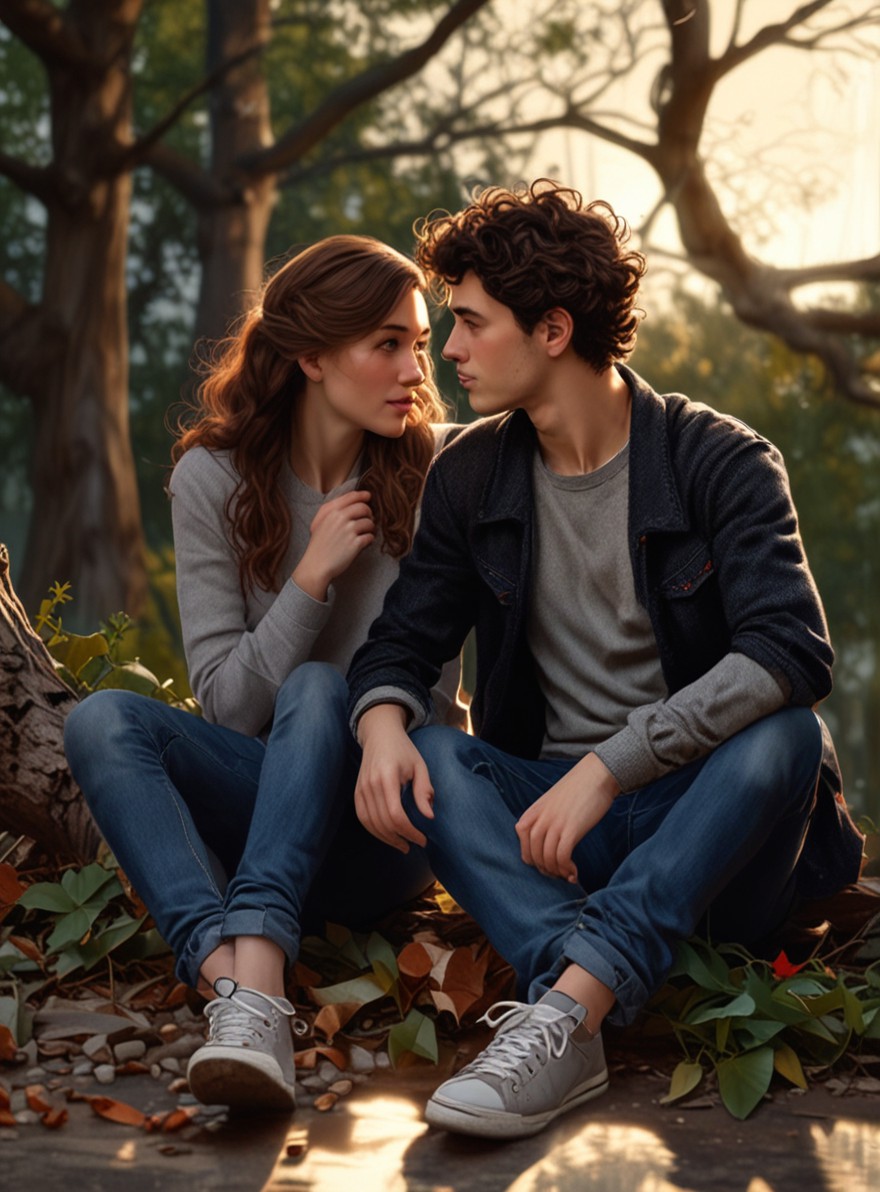 Она достала письмо из рюкзака, то самое, где говорилось про "тень старого дуба". "Тут написано, что оно спрятано под дубом," – сказала она, протягивая бумагу. Артем взял письмо, и его пальцы снова случайно коснулись ее руки. На этот раз Аня не отдернула руку – наоборот, задержала дыхание, чувствуя тепло его кожи. Он заметил это, но ничего не сказал, только уголок его губ чуть приподнялся.