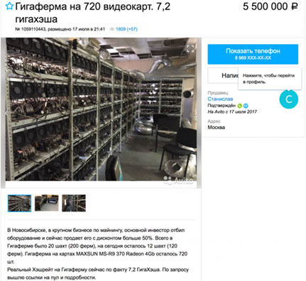 Кстати, к слову – тут в Новосибирске как раз продают «небольшую» ферму для майнинга: