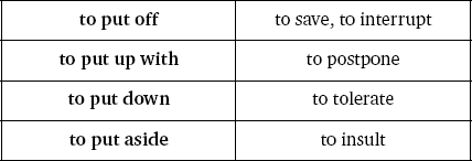 II. Fill the gaps with the words from the table. NB! You’ll need one more phrasal verb with put. Take notice of the correct word order.