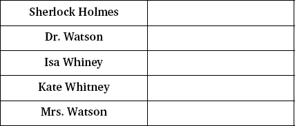 Isa Whiney’s wife couldn’t … with her husband’s long absence, so she … her black veil and headed for her old friends’ in order to ask for their advice. Dr. Watson and his wife Mary were not at all … by this late visit, on the contrary, they were eager to help. This commission couldn’t have been …, so Watson had to go to the opium den, to find Isa and to … his request to return home immediately. It is possible, that Isa hadn’t … enough money to pay for the opium and Watson did it for him, but he is too modest to mention that.