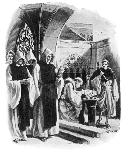 Круглое румяное лицо аббата, пока он оглядывал свое внушительное хозяйство, светилось тихим довольством – такой образцовый царил везде порядок. Как всякий глава богатой обители, аббат Джон – четвертый настоятель, носивший это имя, – был наделен многими талантами и достоинствами. Через посредство им самим выбранных помощников он управлял обширным имением и держал в строгости и благочинии многочисленных обитателей монастыря, удалившихся туда от житейских соблазнов. С теми, кто был ему подчинен, он был суровым и требовательным начальником, но с теми, кто стоял выше его, – ловким и обходительным дипломатом. Он вел ученые беседы с соседними аббатами и лордами, с епископами и папскими легатами, а порой и с его величеством королем. Он должен был разбираться в самых разных предметах – ведь ему приходилось выносить решения и по вопросам церковной доктрины, и по вопросам земледелия, архитектуры, охраны лесов, осушения болот и соблюдения феодального права. Он олицетворял собой правосудие во всех держаниях аббатства, которые охватывали немалую часть Гемпшира и Суррея. Монахам его неудовольствие грозило долгой епитимьей, ссылкой в более строгую обитель или даже темницей и цепями. И мирян он мог подвергнуть любой каре, кроме смерти телесной, зато в его власти было отлучить их от церкви, то есть обречь на гибель духовную, куда более страшную.