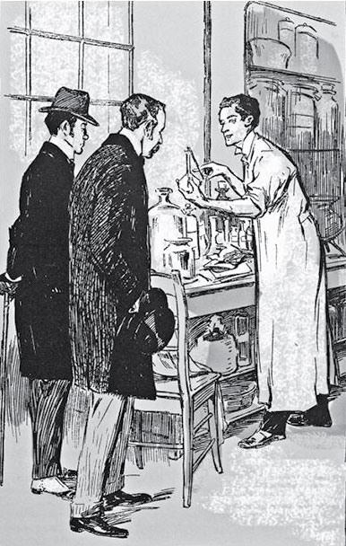В глубине зала, наклонившись над столом и весь углубленный в свои занятия, сидел молодой человек. При шуме наших шагов он быстро поднял голову и бросился к нам, испустив восклицание триумфа и подсовывая под нос моего спутника стеклянную ступку.