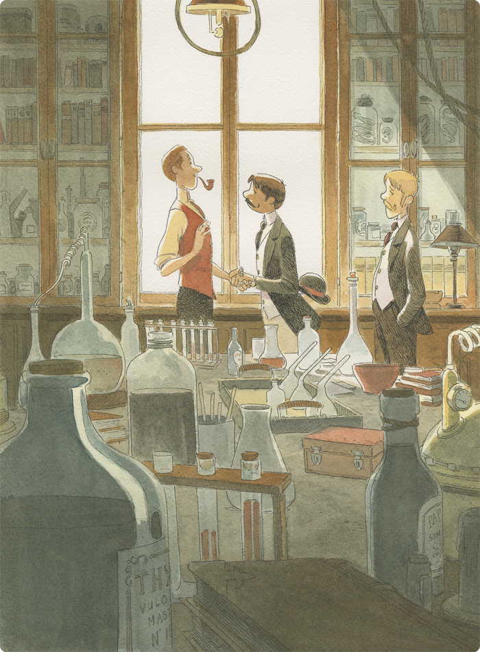 Оставив Холмса наедине с его химикалиями, мы вдвоем пошли к моей гостинице.