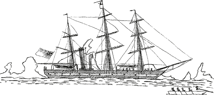 Предшественник «Надежды» китобойное судно «среди льдов и торосов» в 1869 году. (Из книги «Просторы Арктики» Уильяма Бредфорда, Джона Л. Дранмора и Джорджа Крикерсона. Лондон. Сэмпсон Лоу, 1973).