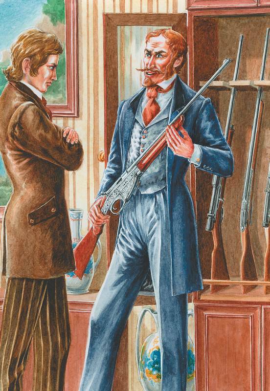 Лорд Рокстон открыл дубовый шкаф, внутри которого оказался целый арсенал великолепных ружей. Он с любовью вынимал их по одному, проверял затвор и, нежно поглаживая, ставил обратно.