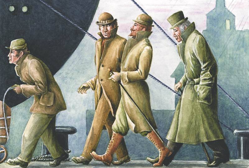 Мои последние воспоминания об Англии связаны с туманным дождливым весенним утром. Мы трое – понурый профессор Саммерли, производящий впечатление человека, горько раскаивающегося в принятом решении, бодрый и решительный лорд Джон Рокстон и я, довольный тем, что предотъездная суета и горечь прощания остались далеко позади, – шагаем в промокших плащах по причалу. Перед нами носильщик на тележке везет чемоданы со снаряжением.