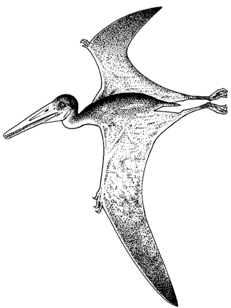 Птеродактили или диморфодоны (двуформозуб), – крылатые ящеры верхнеюрского и нижнемелового периодов – обитали на территории современной Европы и Восточной Африки от 200 до 180 млн лет назад. Размах крыльев до 2 м, длина от кончика головы до кончика хвоста – 120 см, размер головы – до 30 см. Они жили стаями и кормились рыбой и насекомыми.