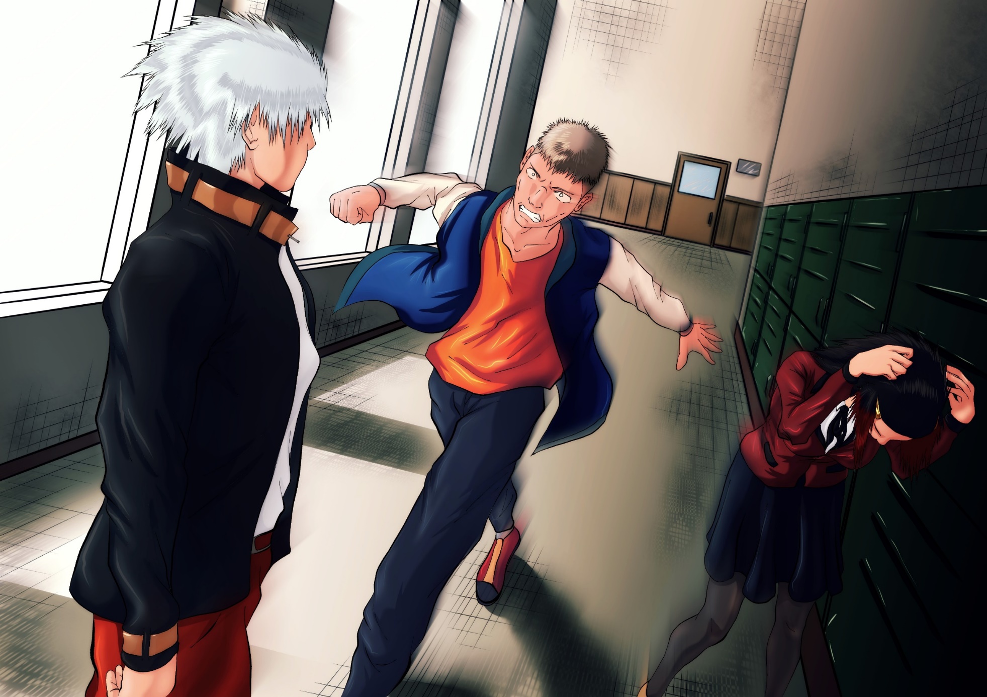 Он стоял буквально передо мной: здоровый парень с телосложением, как у какого-нибудь американского футболиста. К сожалению, я его узнала. Это был Дэйчи – один из самых видных и авторитетных старшеклассников. Его успеваемость оставляла желать лучшего, но его спортивные заслуги многое затмевали. Мало кто из сверстников осмеливался ему перечить. Он пристально смотрел мне в глаза. Его маленькие зрачки создавали впечатление как от какого-то дикого зверя. Его массивная правая рука опиралась на те самые шкафчики позади меня, что практически полностью перекрывало мне какой-либо обзор на окружение. Все его поведение давило на меня буквально физически, как будто я вот-вот буду впечатана в стену.