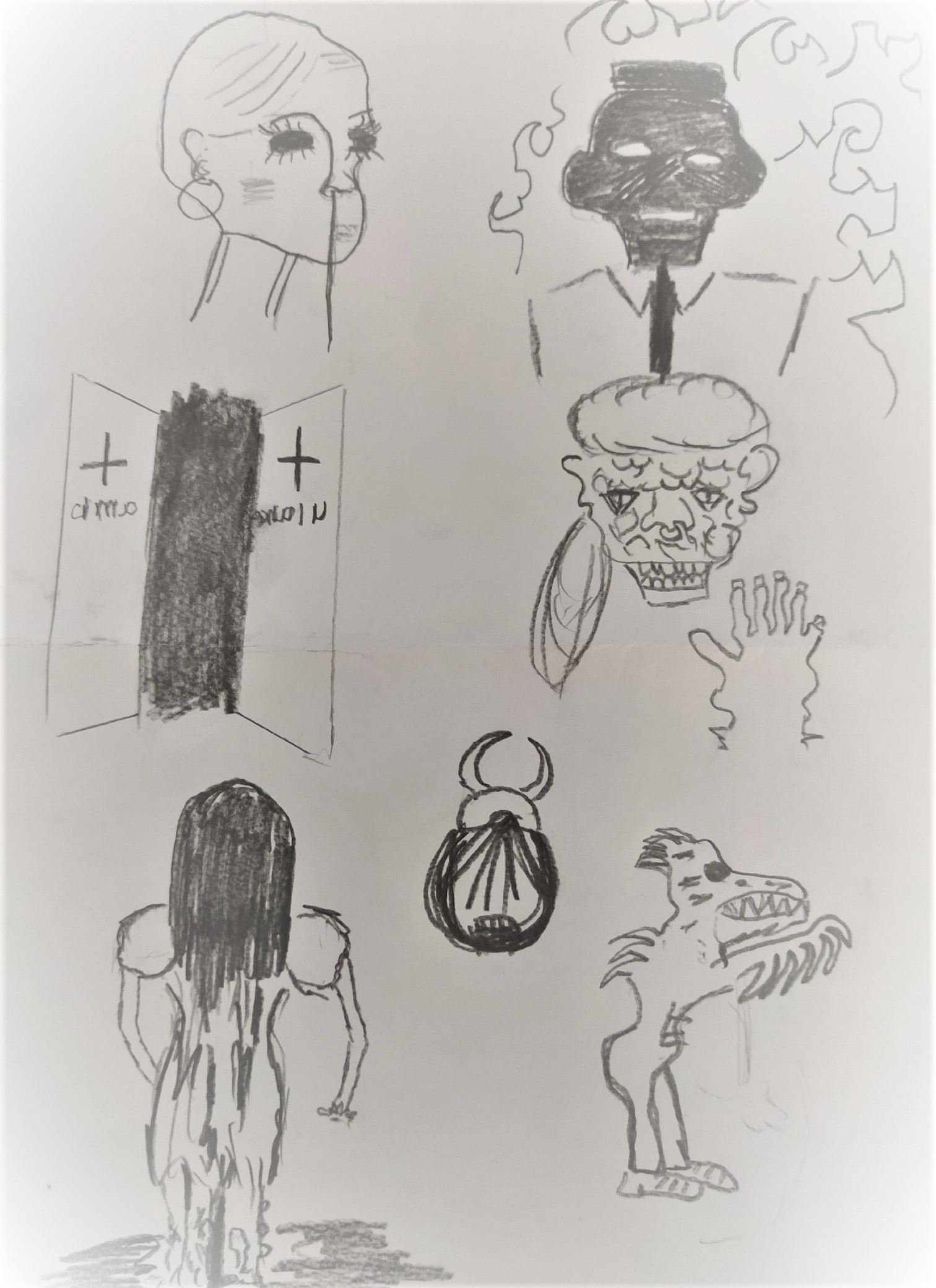 На первых страницах были зарисовки гуманоидных чудовищ. С головами животных, в виде скелетов. С рогами, крыльями, клыками. По одним изображением Кори вынес диагноз: маниакально депрессивный психоз. Здоровый человек не нарисовал бы такое.