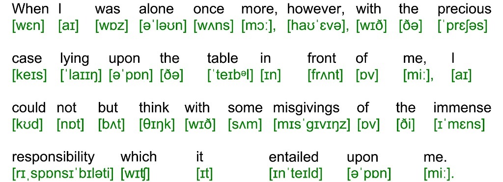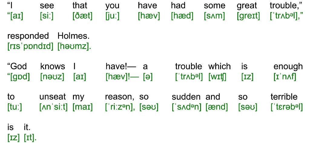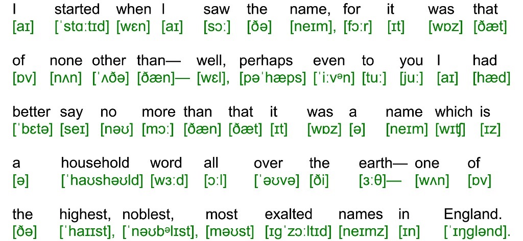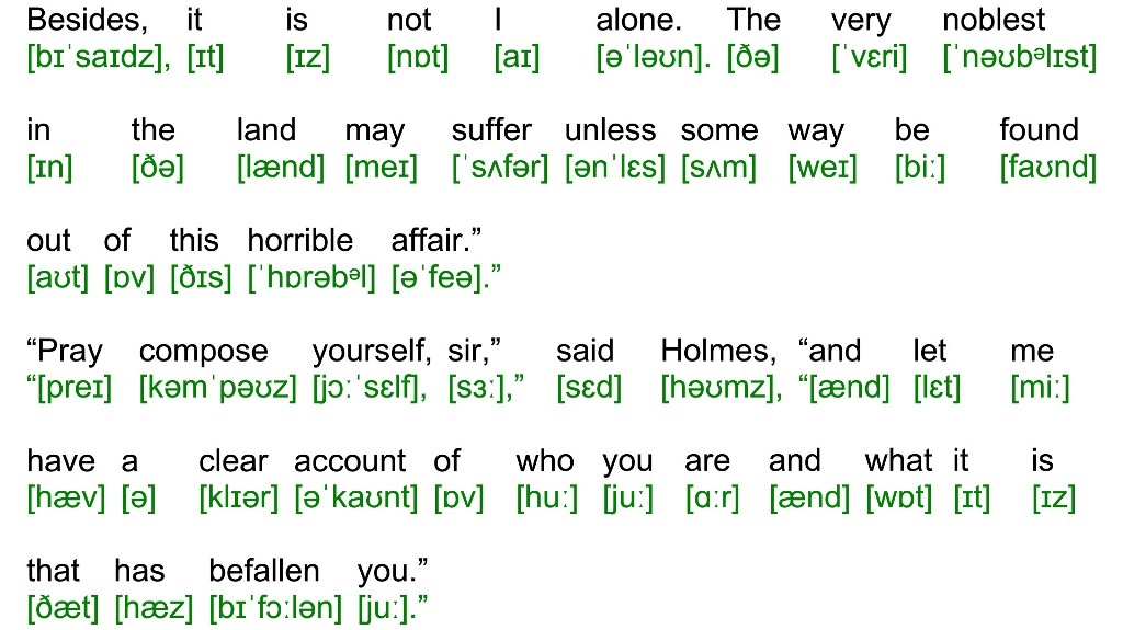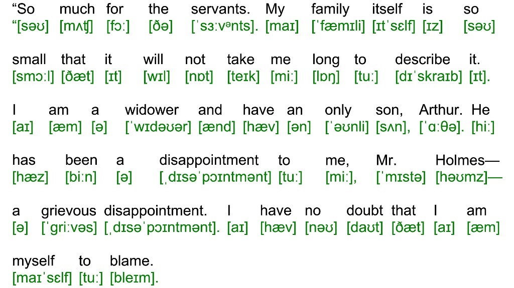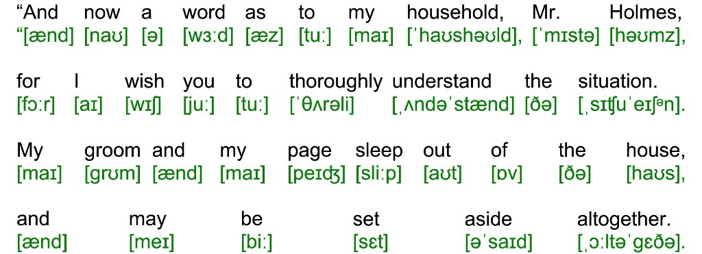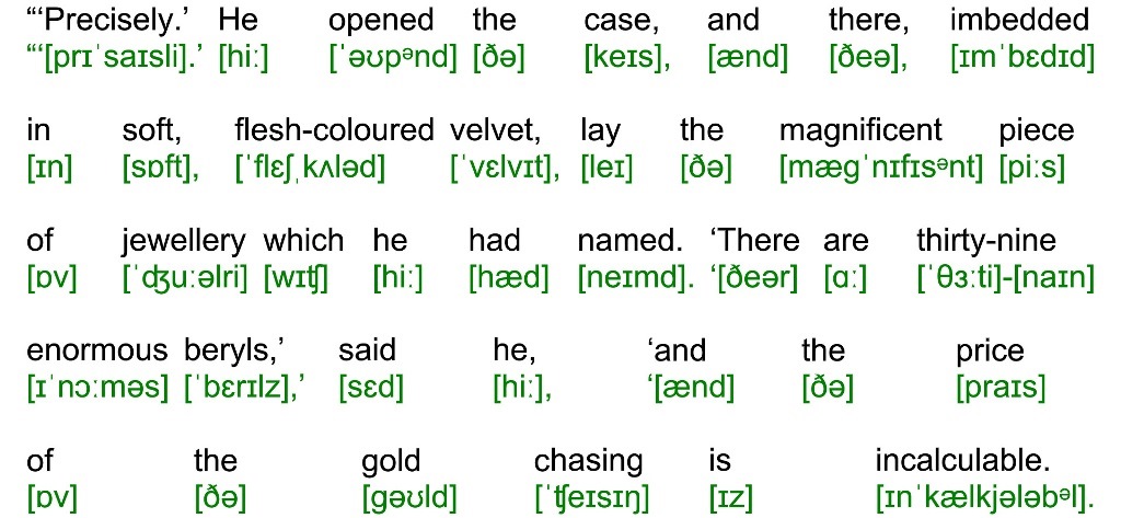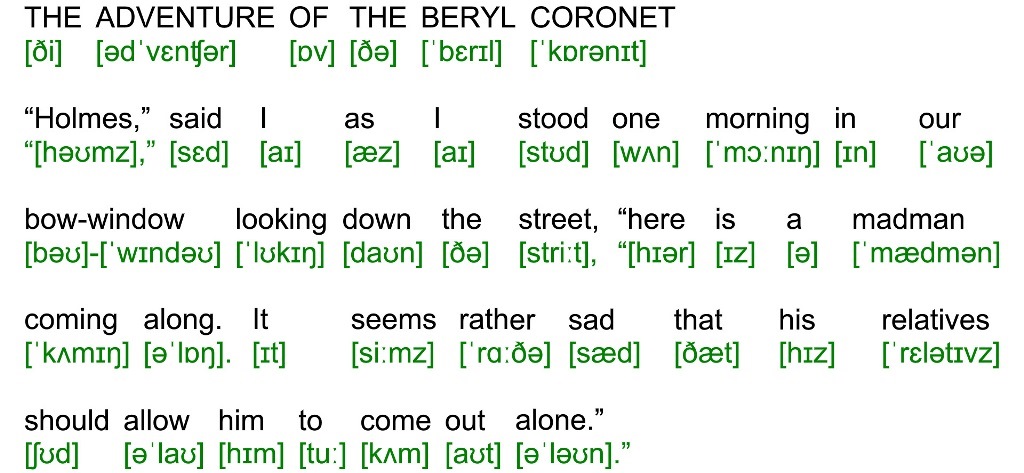 В данной книге приводится транскрипция текста рассказа А.К. Дойла «Берилловая диадема» на английском языке. Текст рассказа разбит на небольшие фрагменты. Фрагменты пронумерованы порядковыми номерами (01, 02,…,42). После номера фрагмента приведены время начала и окончания аудиозаписи текста фрагмента в аудиокниге. Для каждого фрагмента подготовлена транскрипция текста, оформленная в виде иллюстраций с изображением транскрипции текста фрагмента.