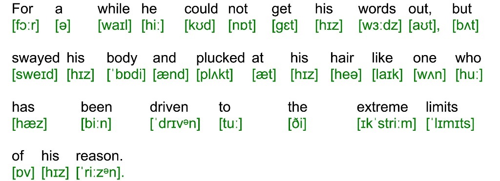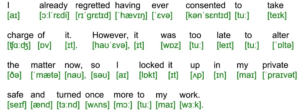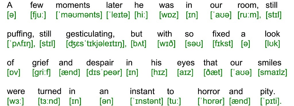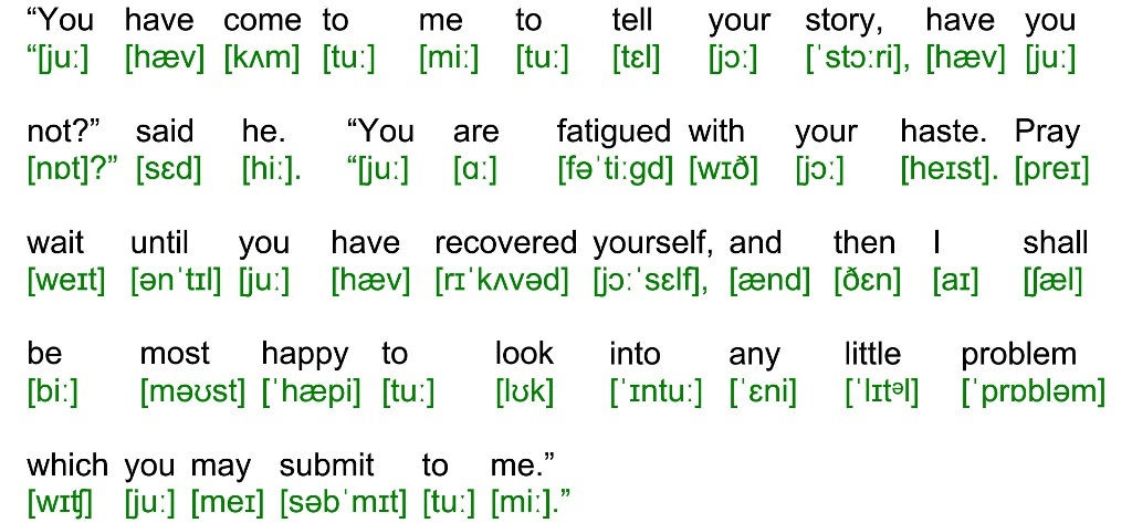 Таким образом, чтение рассказа производится с «подсказками» в виде транскрипции и прослушиванием аудиокниги.