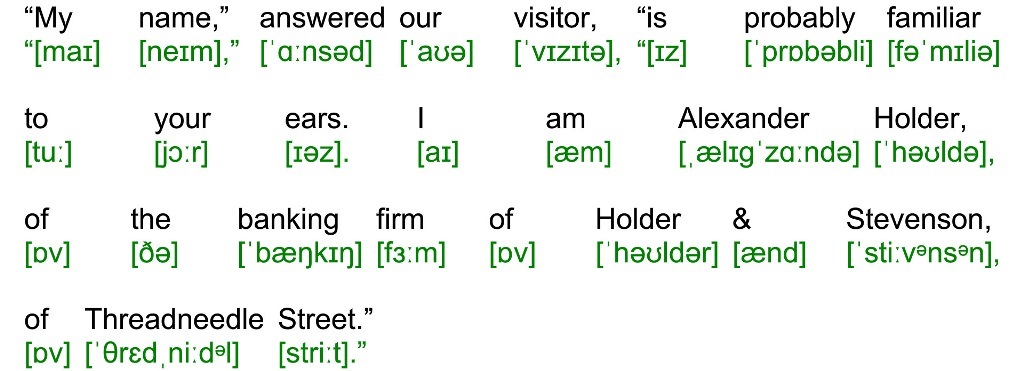 “My name,” answered our visitor, “is probably familiar to your ears. I am Alexander Holder, of the banking firm of Holder & Stevenson, of Threadneedle Street.”