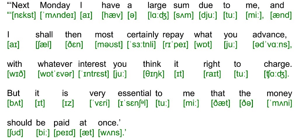 “‘Next Monday I have a large sum due to me, and I shall then most certainly repay what you advance, with whatever interest you think it right to charge. But it is very essential to me that the money should be paid at once.’