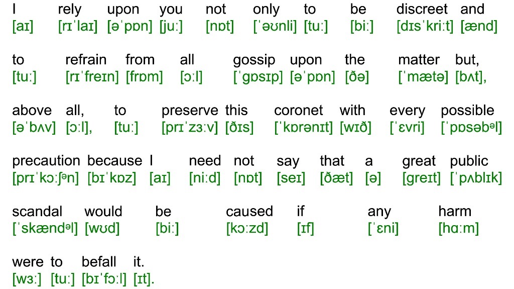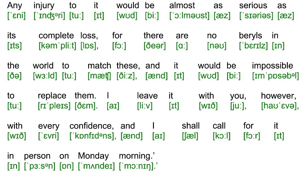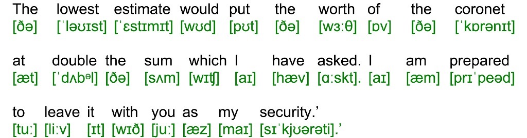 “‘You understand, Mr. Holder, that I am giving you a strong proof of the confidence which I have in you, founded upon all that I have heard of you. I rely upon you not only to be discreet and to refrain from all gossip upon the matter but, above all, to preserve this coronet with every possible precaution because I need not say that a great public scandal would be caused if any harm were to befall it. Any injury to it would be almost as serious as its complete loss, for there are no beryls in the world to match these, and it would be impossible to replace them. I leave it with you, however, with every confidence, and I shall call for it in person on Monday morning.’
