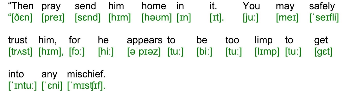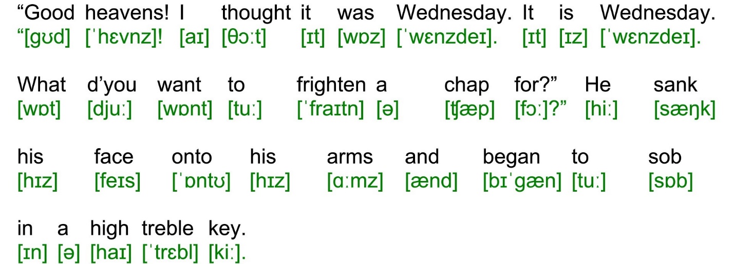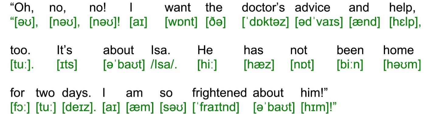 Таким образом, чтение рассказа производится с «подсказками» в виде транскрипции, просмотром и прослушиванием видеороликов.
