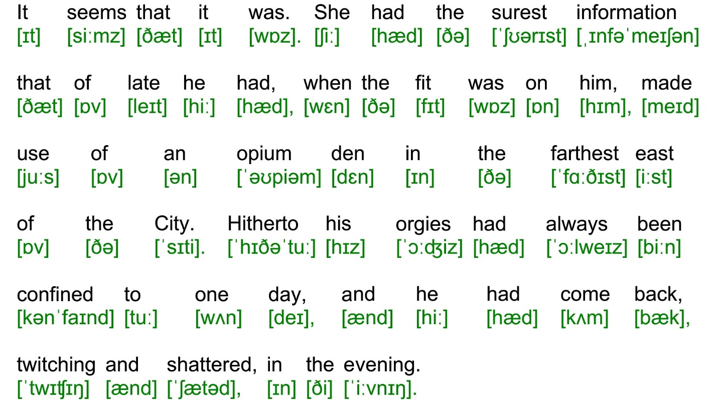 It seems that it was. She had the surest information that of late he had, when the fit was on him, made use of an opium den in the farthest east of the City. Hitherto his orgies had always been confined to one day, and he had come back, twitching and shattered, in the evening.