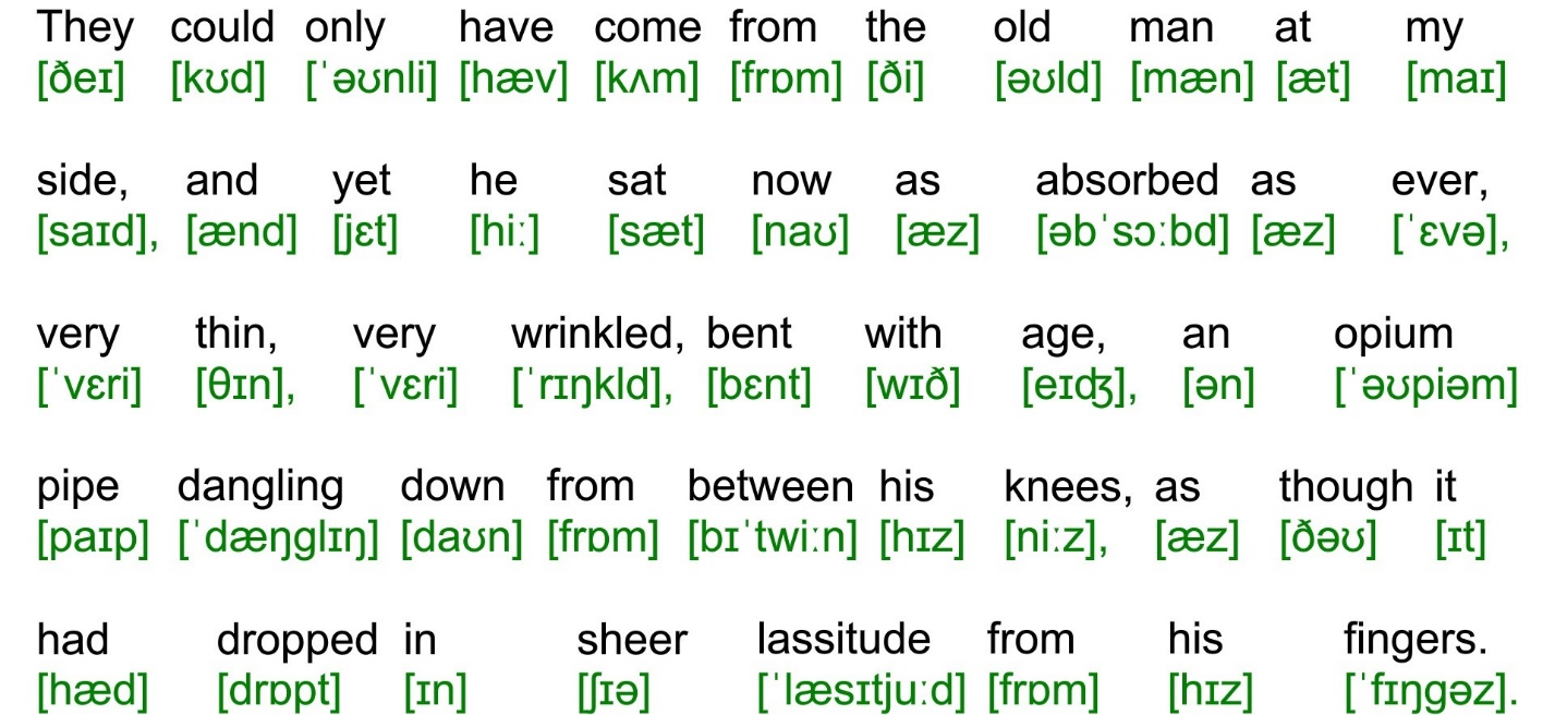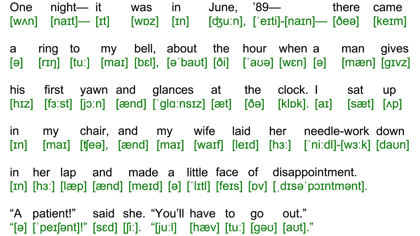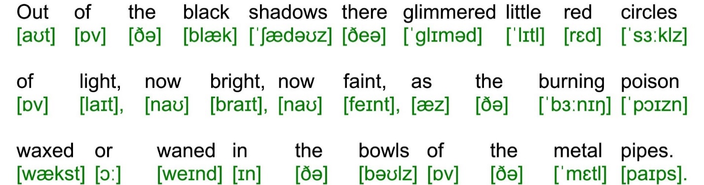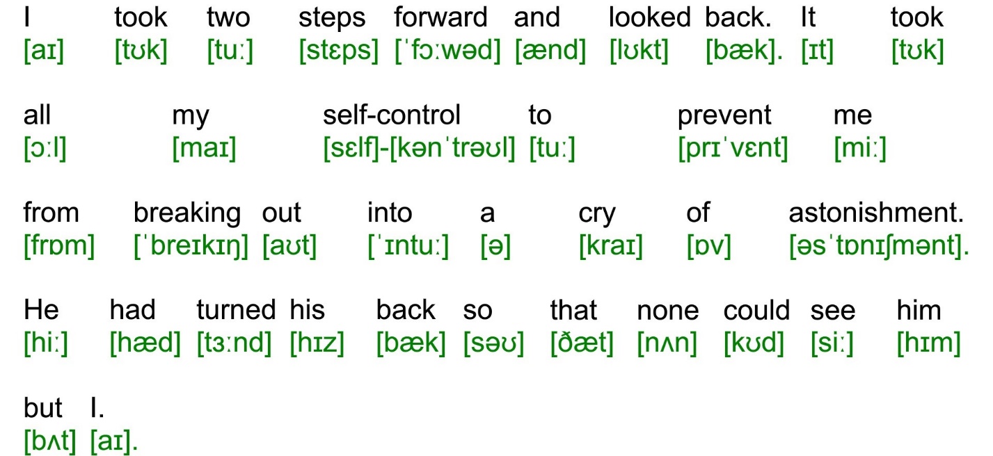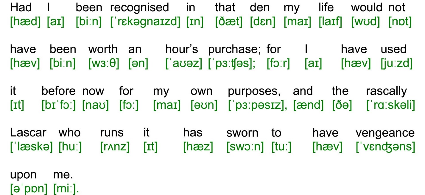 В данной книге приводится текст рассказа А.К. Дойла «Человек с рассечённой губой» на английском языке с транскрипцией. Текст рассказа разбит на небольшие фрагменты. Для каждого фрагмента подготовлена транскрипция, оформленная в виде иллюстрации с изображением транскрипции текста фрагмента. Фрагменты пронумерованы порядковыми номерами (001, 002,…,245). Для каждого фрагмента создан видеоролик – презентация данного фрагмента. Адрес видеоролика приведён после номера фрагмента. С видеороликами можно работать как в режиме on-line, так и в режиме off-line, предварительно скачав их. Адрес папки с видеороликами: