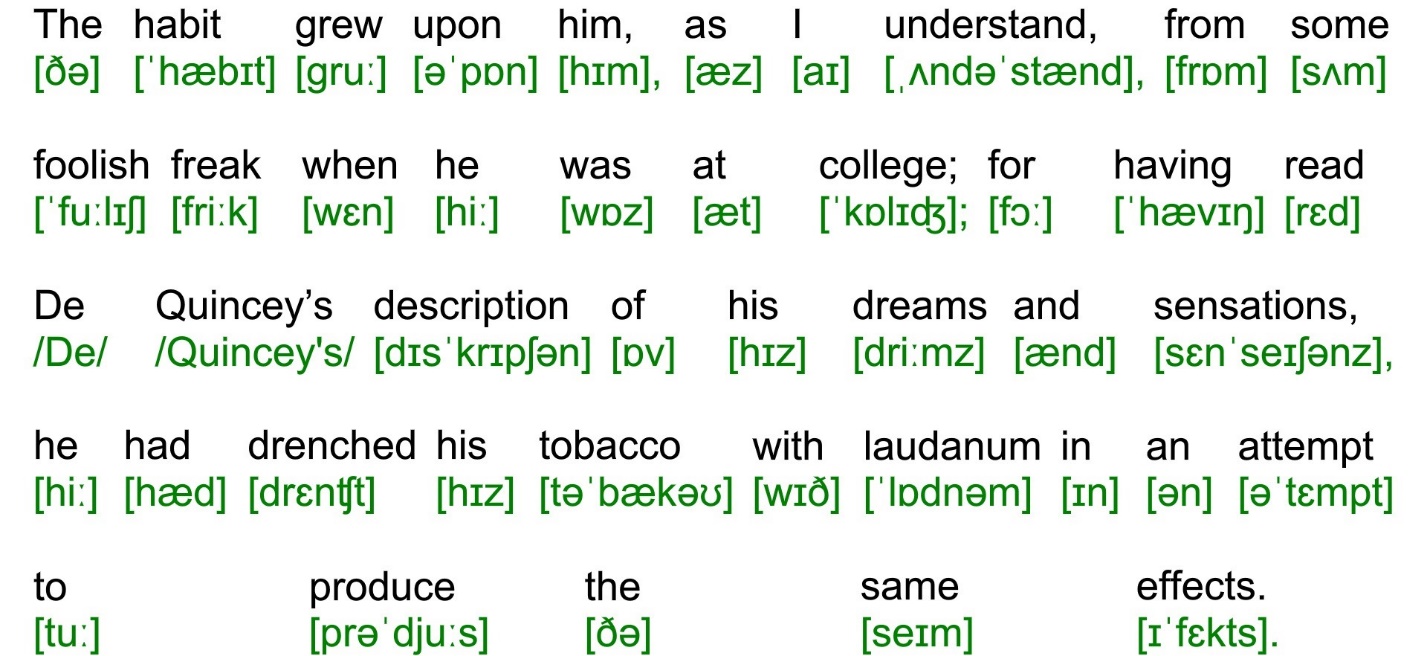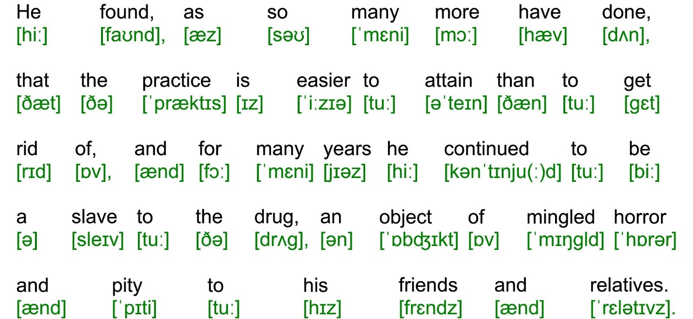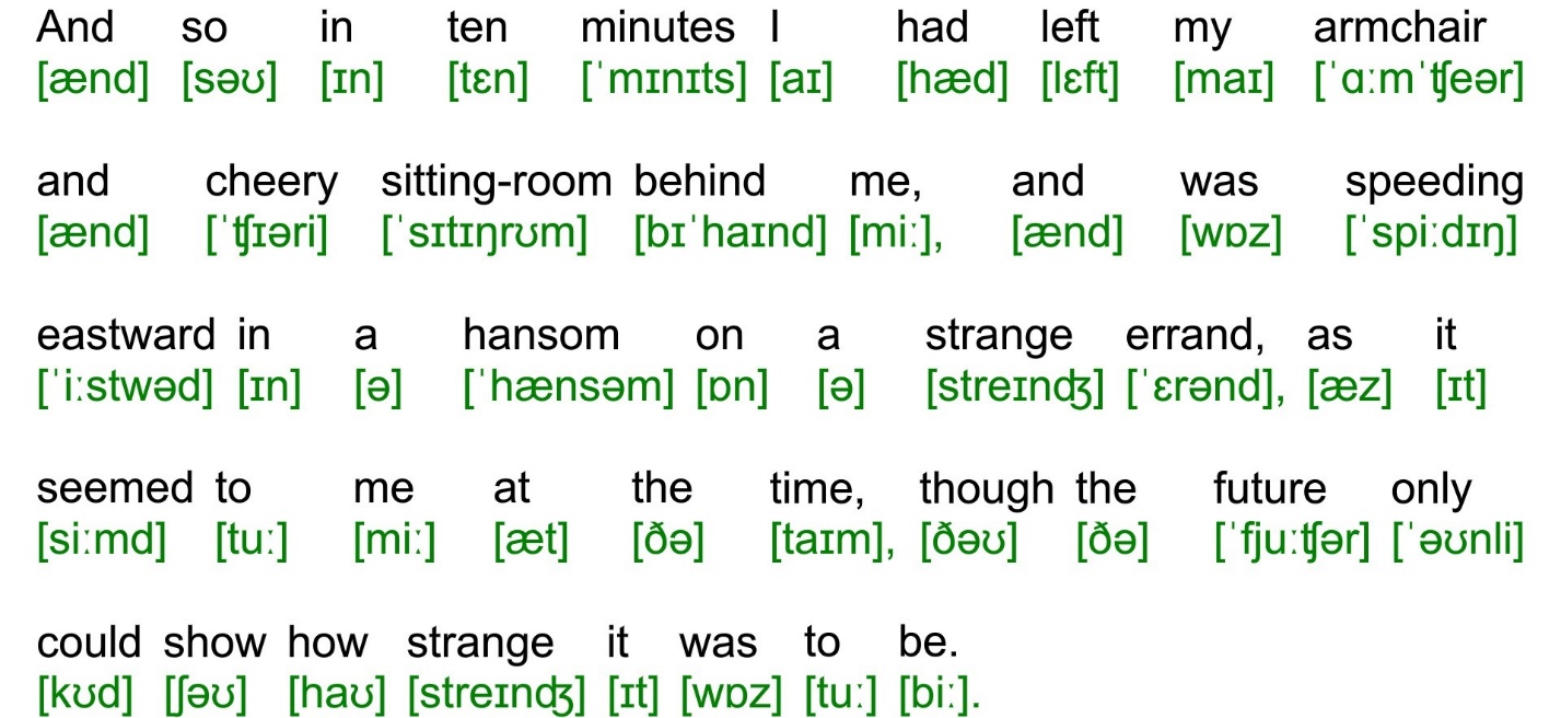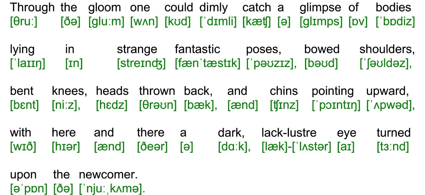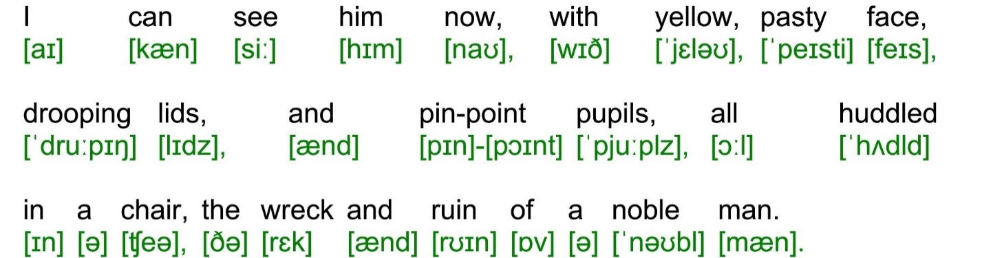 В данной книге приводится текст рассказа А.К. Дойла «Человек с рассечённой губой» на английском языке с транскрипцией. Текст рассказа разбит на небольшие фрагменты. Для каждого фрагмента подготовлена транскрипция, оформленная в виде иллюстрации с изображением транскрипции текста фрагмента. Фрагменты пронумерованы порядковыми номерами (001, 002,…,245). Для каждого фрагмента создан видеоролик – презентация данного фрагмента. Адрес видеоролика приведён после номера фрагмента. С видеороликами можно работать как в режиме on-line, так и в режиме off-line, предварительно скачав их. Адрес папки с видеороликами: