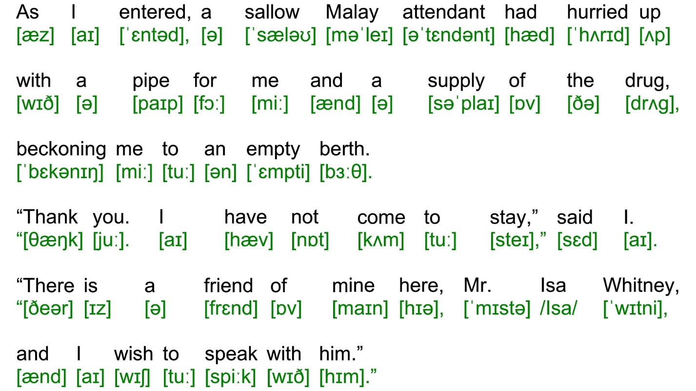 As I entered, a sallow Malay attendant had hurried up with a pipe for me and a supply of the drug, beckoning me to an empty berth.
