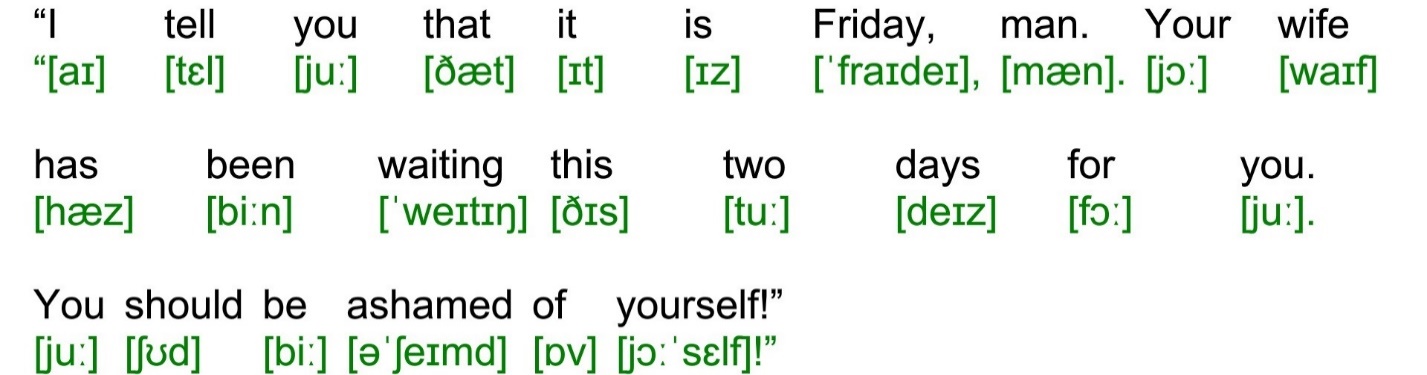 “I tell you that it is Friday, man. Your wife has been waiting this two days for you. You should be ashamed of yourself!”