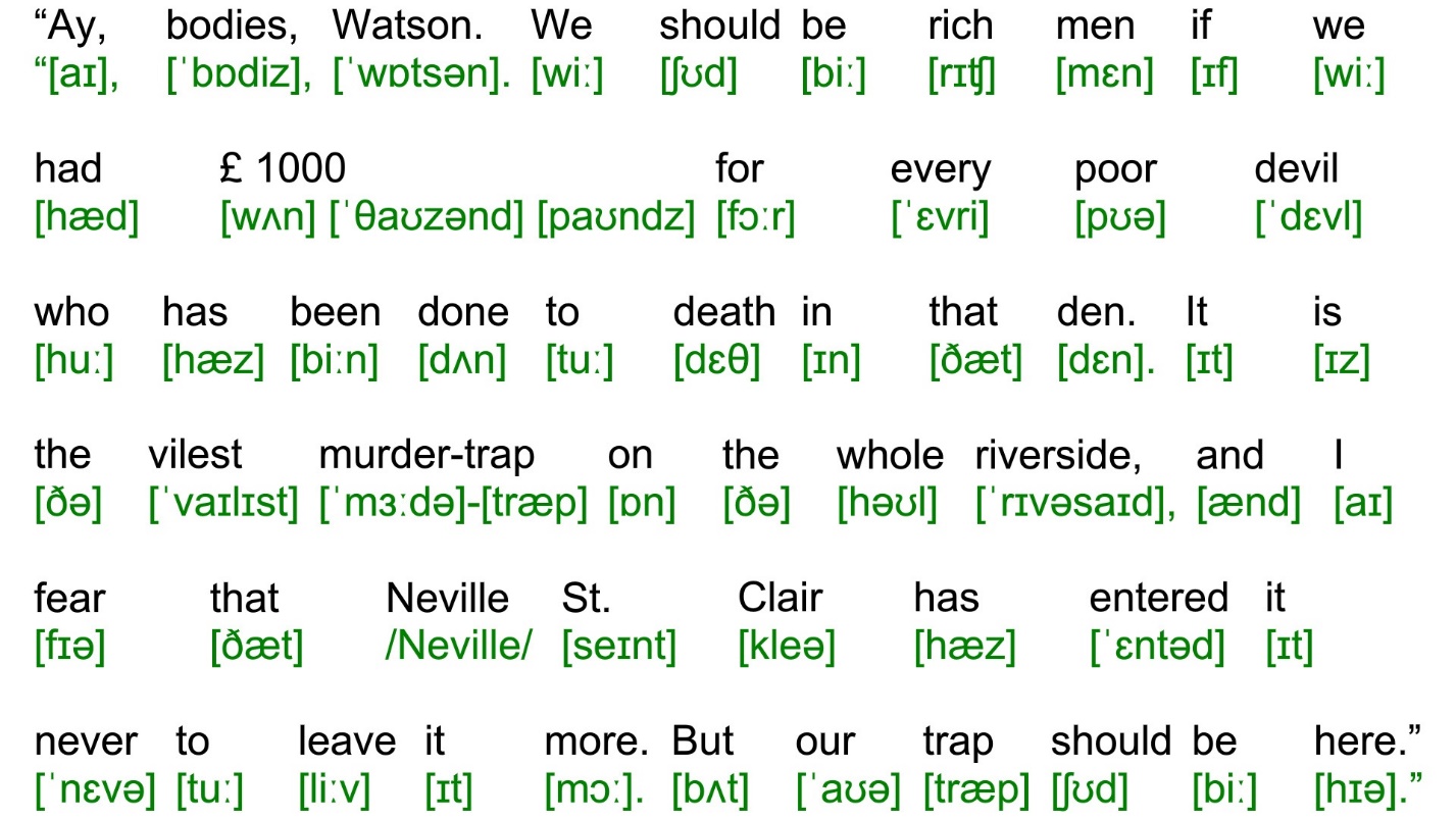 “Ay, bodies, Watson. We should be rich men if we had £ 1000 for every poor devil who has been done to death in that den. It is the vilest murder-trap on the whole riverside, and I fear that Neville St. Clair has entered it never to leave it more. But our trap should be here.”