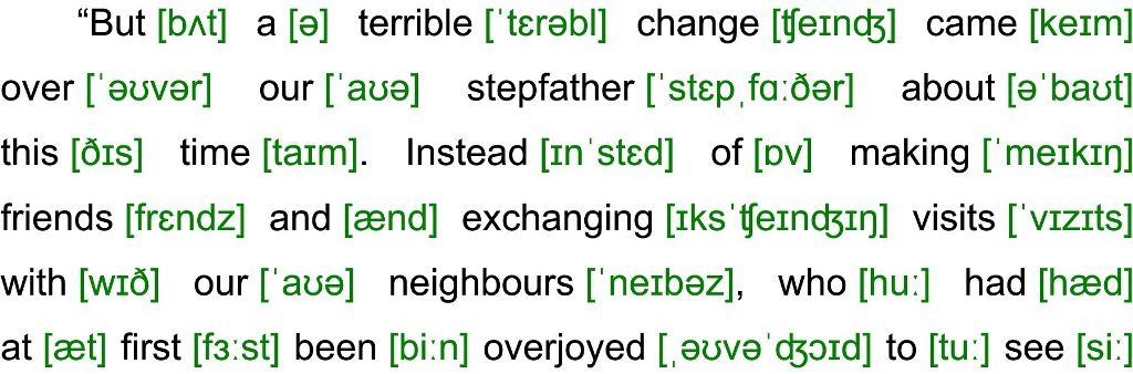 Таким образом, чтение рассказа производится с «подсказками» в виде транскрипции и прослушиванием аудиокниги.