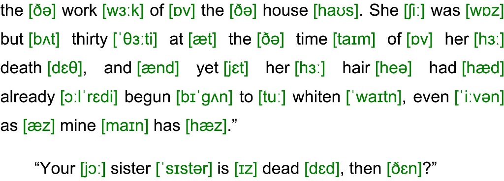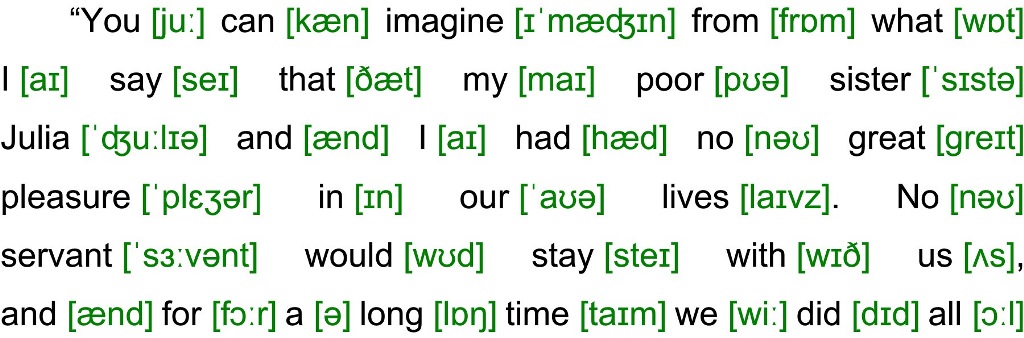 “You can imagine from what I say that my poor sister Julia and I had no great pleasure in our lives. No servant would stay with us, and for a long time we did all the work of the house. She was but thirty at the time of her death, and yet her hair had already begun to whiten, even as mine has.”