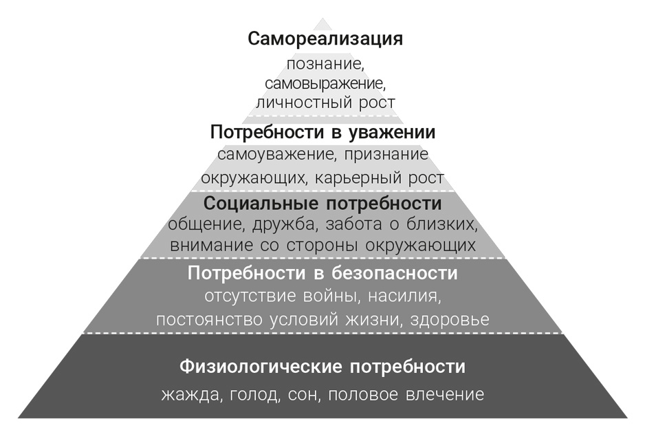 Наиболее известную и популярную теорию выдвинул американский психолог, доктор наук Абрахам Маслоу в 1943 году. Он разделил все человеческие потребности на 5 уровней и представил их в виде пирамиды: