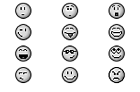 Вторая разновидность смайликов – графические смайлики (рис. 1.4) – представляет все эти эмоции в миниатюрных нарисованных картинках, зачастую наделенных какой-то анимацией (подмигивающий глаз, трясущий головой в такт неслышимой мелодии смайлик-панк и т.д.). Они используются преимущественно в форумах, чатах, а также в программах для обмена мгновенными сообщениями (IMS – Instant Messaging System). Употребление графических смайликов в деловой переписке электронной почты считается плохим тоном, но в личной никто вам ничего запретить не может. Несмотря на то что во многих почтовых программах есть возможность вставки графических смайликов, лучше обойтись их текстовыми аналогами.