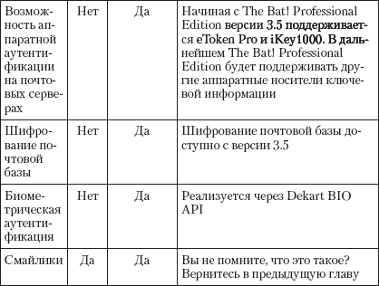 Клиент The Bat! под номером один в списке выше выпускается в двух версиях: Home и Professional, отличия которых вы можете видеть в таблице ниже.