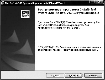 1. Запустите скачанный файл. Первое диалоговое окно известит вас о том, что программа морально готова к установке (рис. 2.54). Нажмите кнопку Далее.