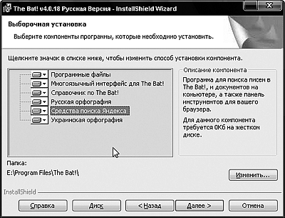 Рис. 2.57. В этом окне вы выбираете комплектацию The Bat! и задаете нужный путь установки