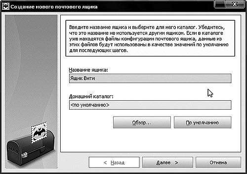 5. Для начала вам надо указать название почтового ящика, под которым он будет отображаться в программе (рис. 2.61); потом его, естественно, можно изменить. Находится ящик в общей папке хранения почты в The Bat.