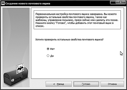 9. После всего этого ужаса программа спросит вас, хотите ли вы проверить остальные настройки. Поскольку сейчас мы занимаемся максимально быстрой настройкой, то ответим Нет на этот вопрос (рис. 2.65) и нажмем кнопку Готово.